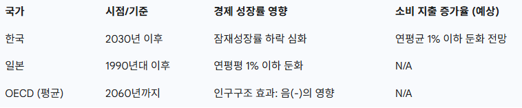 인구 감소에 따른 아시아 주요국의 경제 성장률 및 소비 지출 전망을 요약하면 다음과 같습니다.