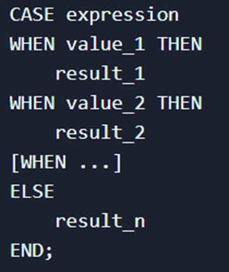 PostgreSQL은 다음과 같이 단순 형식이라는 또 다른 형식의 CASE 표현식을 제공합니다.