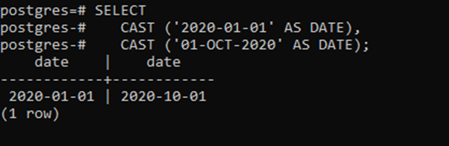 PostgreSQL은 한 유형의 값을 다른 유형으로 변환하는 데 사용되는 CAST 연산자를 지원합니다.