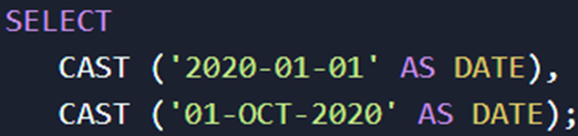 이 예에서는 CAST를 사용하여 문자열을 날짜로 변환합니다.