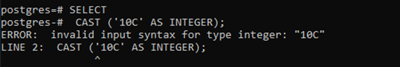 식을 대상 유형으로 변환할 수 없는 경우 PostgreSQL에서 오류가 발생합니다. 다음을 참조하십시오.