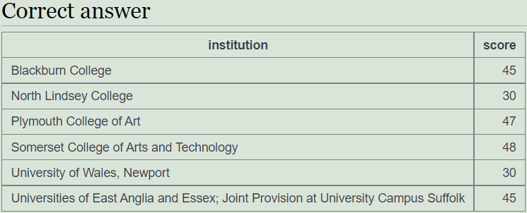 SELECT institution, score