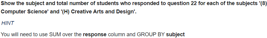 AND subject IN ('(8) Computer Science', '(H) Creative Arts and Design')