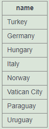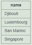 문제11. 룩셈부르크의 수도는 룩셈부르크입니다. 수도가 나라 이름과 같은 모든 나라를 보여 준다.