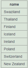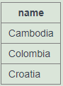 %는 와일드 카드이며 모든 문자와 일치할 수 있습니다. Y로 시작하는 나라를 찾아보세요.