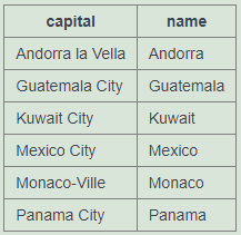 문제12. 멕시코의 수도는 멕시코시티입니다. "City"라는 단어와 함께 수도가 있는 모든 나라를 찾아보세요.