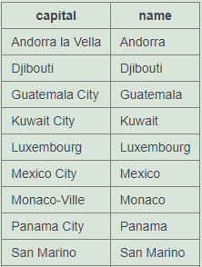 Mexico City는 Mexico보다 길기 때문에 포함시켜야 합니다. Luxemburg는 수도가 나라와 같기 때문에 포함하면 안 됩니다. 즉, 수도의 레터 수가 국가 이름보다 길어야 합니다.