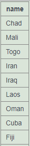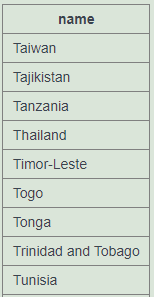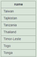 문제1. WHERE 이름 LIKE 'B%'를 사용하여 "B"로 시작하는 국가를 찾을 수 있습니다.