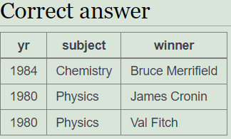 OR (subject='Chemistry' AND yr='1984')