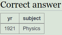 SELECT yr, subject, winner