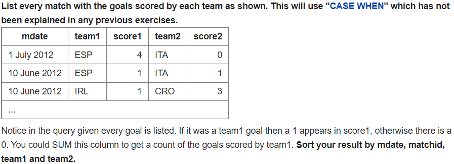 CASE WHEN teamid = team1 THEN 1 ELSE 0 END score1,