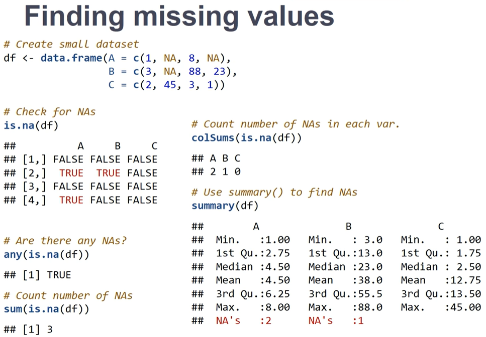 - In R, represented as NA